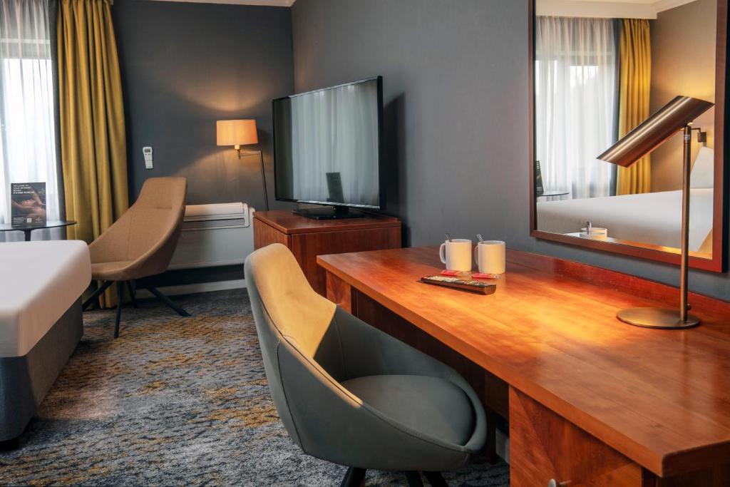Отель может похвастаться роскошными жильями с участием всех типичных удобств, ожидаемых от главного четырехзвездочного заведения. Каждая комната элегантно спроектирована, обеспечивая комфортное проживание независимо от того, предпочитают ли гости расслабиться в спа -салоне, участвовать в фитнес -сессиях, изучить многочисленные спортивные сооружения или просто расслабиться в баре с видом на живописное окружение.