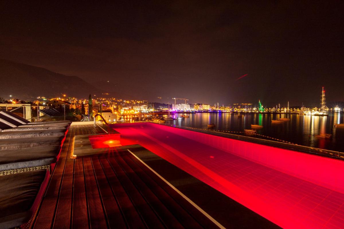 Elysium Tivat, 5-звездочный пляжный курорт в Тивате, предлагает роскошные номера с бесплатным Wi-Fi, частной парковкой и потрясающий вид на море. Наслаждайтесь террасой с видом на море, полностью оборудованной кухней и отдельной ванной комнатой с биде и тапочками. Расслабьтесь на просторном балконе с видом на горы и наслаждайтесь бесконечным бассейном поблизости. Исследуйте популярные достопримечательности, такие как Ponta Seljanova Beach, Waikiki Beach Tivat и Beach Beach в пределах легкой досягаемости. Всего в 3,1 милях от аэропорта Тиват, этот пункт назначения обещает беспрецедентное обслуживание и комфорт.