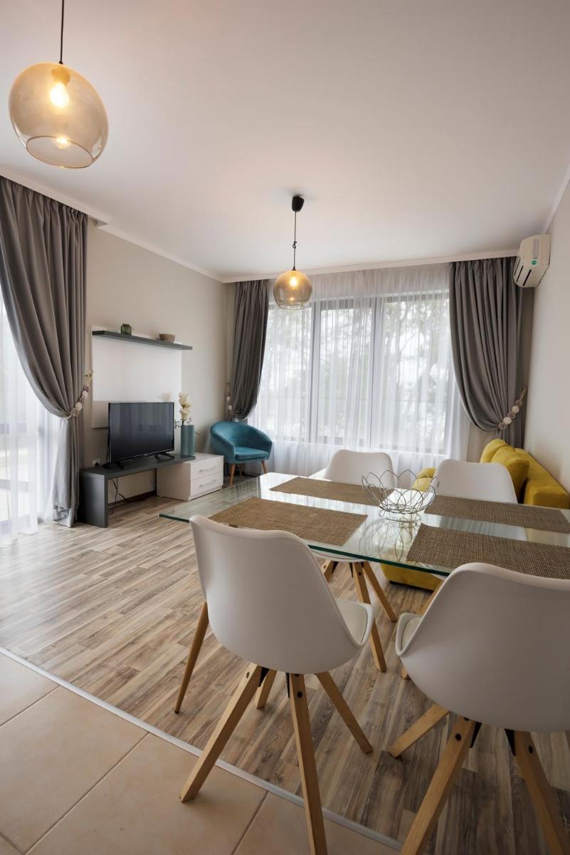 Apartments Green Paradise Deluxe предлагает жилье возле Aquapark Primorsko, с бесплатным Wi-Fi, телевизором с плоским экраном и полностью оборудованной кухней. Гости наслаждаются доступом к гидромассажной ванне и игровой площадке. Удобно расположенная в пределах 1640 футов от аэропорта, недвижимость легко доступна для тех, кто планирует поездки от 2 до 4 человек.