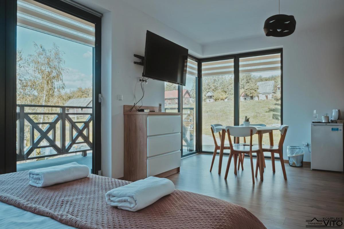 Kompleks Tawerna Vito - Aparumenty Vito расположен в Чорштине, предлагая жилье на пляже всего в 17 км от замка Нидзика. Этот очаровательный жилой комплекс может похвастаться живописным садом и террасой, обеспечивая идеальное место для отдыха и наслаждения на открытом воздухе. Каждое устройство в комплексе оснащено гардеробом, телевизором с плоским экраном, чайником, отдельной ванной комнатой и бесплатным Wi-Fi, что делает его идеальным для обоих путешественников, ищущих комфорт, так и для тех, кто хочет исследовать свое окружение.