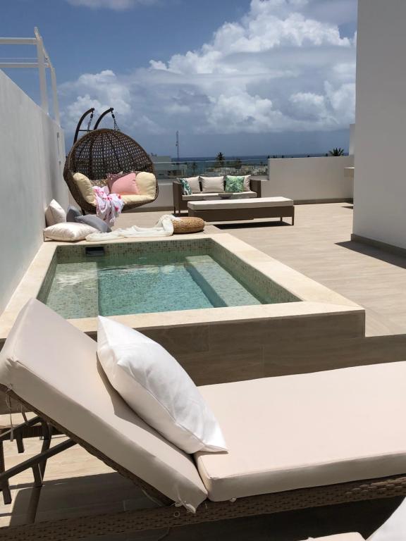 Penthouse Penthouse Skyview, всего в 5 минутах ходьбы от Arena Gorda Beach и 1,2 мили от Cocotal Golf и Country Club, предлагает просторные жилья с бассейном на крыше, бесплатный Wi-Fi и бесплатную частную парковку. Наслаждайтесь возвышенным видом на гору с террасы, в комплекте с местами отдыха на открытом воздухе. Лифты и консьержа включены. Этот пентхаус 196 кв. Бесплатные закуски, мини-рынок и трансферы доступны поблизости.